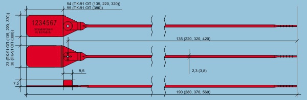 На каждую пластиковую пломбу наносится уникальный код из восьми цифр и надпись «опечатано». Так же, по желанию, могут наноситься логотипы фирмы.