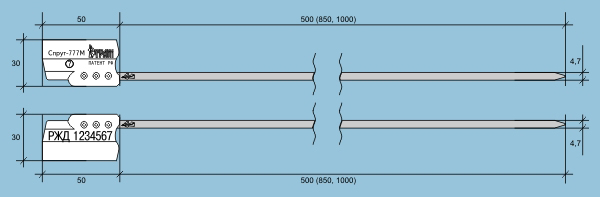 Данное запорное пломбировочное устройство-моноблок предназначено для блокировки любого типа дверей для ж/д контейнеров и вагонов, а также автофургонов, складов и других объектов, которые имеют диаметр отверстия пломбы не меньше пяти миллиметров. Устройство имеется в двух модификациях. Отличия состоят в цвете корпусов, маркировке и методе ее нанесения. СПРУТ 777 РЖД (специальное назначение) применяется на железной дороге России и в Межгосударственном сообществе.